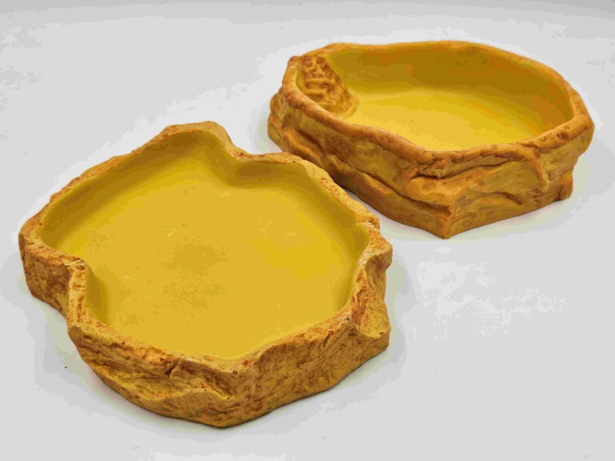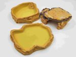 This resin water bowl has a very natural and realistic rock finish on the outside and a smooth non-pitted surface on the inside. The bowl is coated to prevent the development of harmful bacteria and makes it easy to clean. The neutral natural colour allows easy integration in desert, tropical or any type of terrarium. Smaller reptiles, amphibians and insects can easily escape out of the water dish by the ‘safety steps’ inside the bowl to prevent drowning. Matching range of resin feeding dishes also available. Large with steps – 26 x 20 x 6cm
