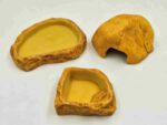 This resin water bowl has a very natural and realistic rock finish on the outside and a smooth non-pitted surface on the inside. The bowl is coated to prevent the development of harmful bacteria and makes it easy to clean. The neutral natural colour allows easy integration in desert, tropical or any type of terrarium. Smaller reptiles, amphibians and insects can easily escape out of the water dish by the ‘safety steps’ inside the bowl to prevent drowning. Matching range of resin feeding dishes also available. Extra Small with steps – 7.7 x 7 x 3cm